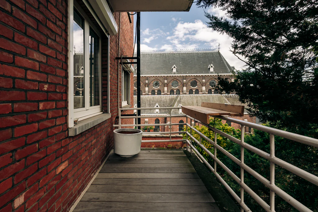 Op de 4de verdieping van een kleinschalig gebouw ligt een designappartement met veel troeven: 2 volwaardige slaapkamers waar een tweepersoonsbed in geplaatst kan worden, een open bureauruimte, een terras én een garagebox. En dan hebben we het nog niet over de leefruimte en de keuken. Doordat de voorgevel zo goed als volledig uit glas bestaat over een lengte van maar liefst 9 meter geniet je hier van een supermooie lichtinval. Met een paar comfortabele kussens nestel je je in no time met een koffie op de vensterbank om daarvan te genieten. Van zonsondergang geniet je dan weer door de kaarsjes in de open haard aan te steken. De badkamer heeft een ligbad met een vast glazen douchescherm en een stijlvol tablet waarop de lavabo staat. Een spiegel over de volledige lengte van de badkamer zorgt voor een extra ruim gevoel. Het toilet bevindt zich apart. Aan de achterzijde van het appartement is er een terras, met veel zon en een groen uitzicht. Parkeren kan in de garagebox op de gelijkvloerse verdieping die aangekocht dient te worden aan 30.000 euro.