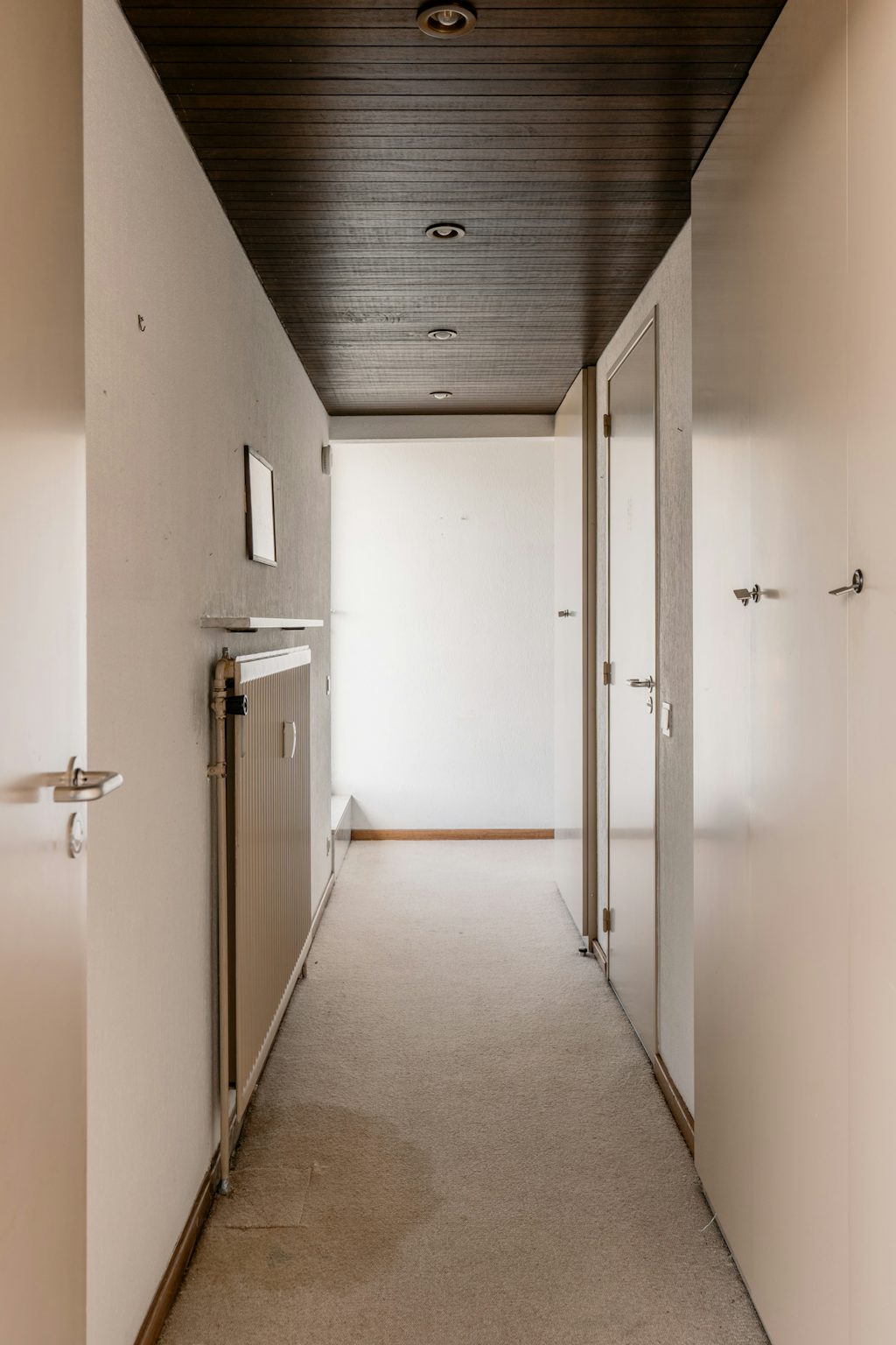 Exact 50 jaar geleden, in 1974, besloten Ignace en Eveline een nieuwbouw penthouse te kopen in Wilrijk. Met een beroep als binnenhuisarchitect werd die volledig naar eigen smaak en tijdloos ingericht. Na al die jaren zijn wij nog steeds fan van de kwalitatieve materialen en de indeling. Maar een tapijt van 50 jaar oud, mag natuurlijk wel eens vervangen worden. En een intercom om je man binnenhuis te bellen van zodra het eten klaar is, is ook niet meer echt van deze tijd (wij zouden nu een Whatsapp sturen om te zeggen dat de Deliveroo is geleverd). De indeling lijkt ons nog wel zeer geschikt, met 3 ruime slaapkamers en 2 badkamers. Eén daarvan (met ligbad) is rechtstreeks verbonden met de masterbedroom. Elke kamer heeft een uitzicht op het groen van Wilrijk, ook de keuken en de leefruimte. Vanuit de keuken is er toegang naar een terras van 75 m² met zicht op Park Den Brandt. Het uitzicht vanop dat terras doet ons zelfs aan de Ardennen denken. Het terras aan de leefruimte moet hier niet voor onder doen. Het is even groot en geeft uitzicht op het groen van de Antwerp Indian Cricket Club. Wil je liever echte aarde onder je voeten voelen, dan kan je plaatsnemen in de gemeenschappelijke binnentuin. Bij het appartement hoort op het gelijkvloers een privatieve berging en een fietsenberging. Er zijn ook 2 inpandige autostaanplaatsen (met stopcontact en water) die aangekocht dienen te worden aan 25.000 euro per autostaanplaats.