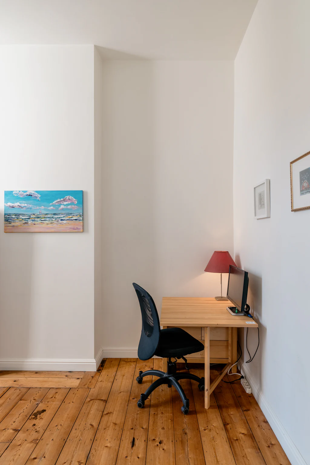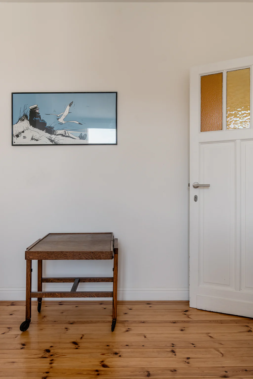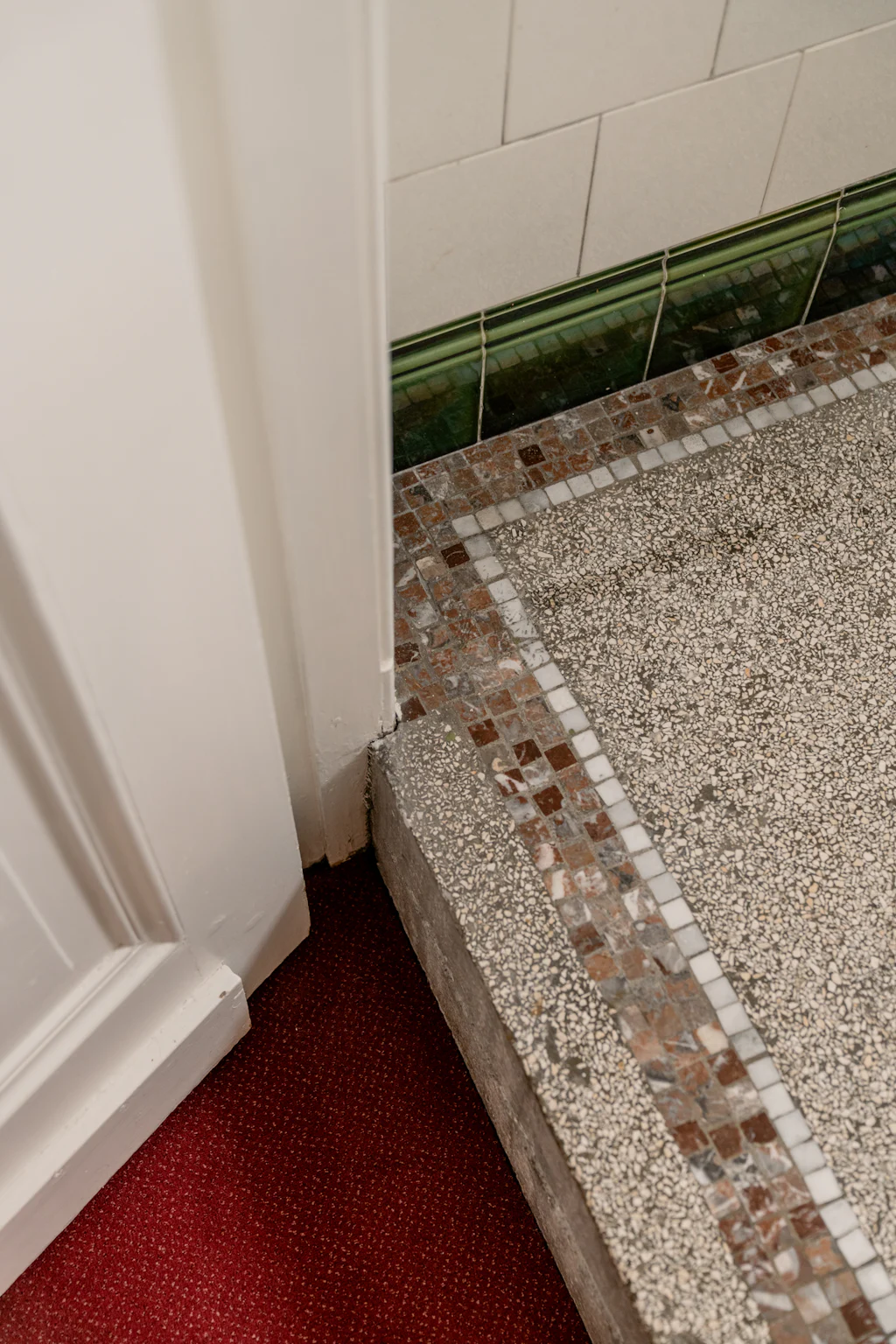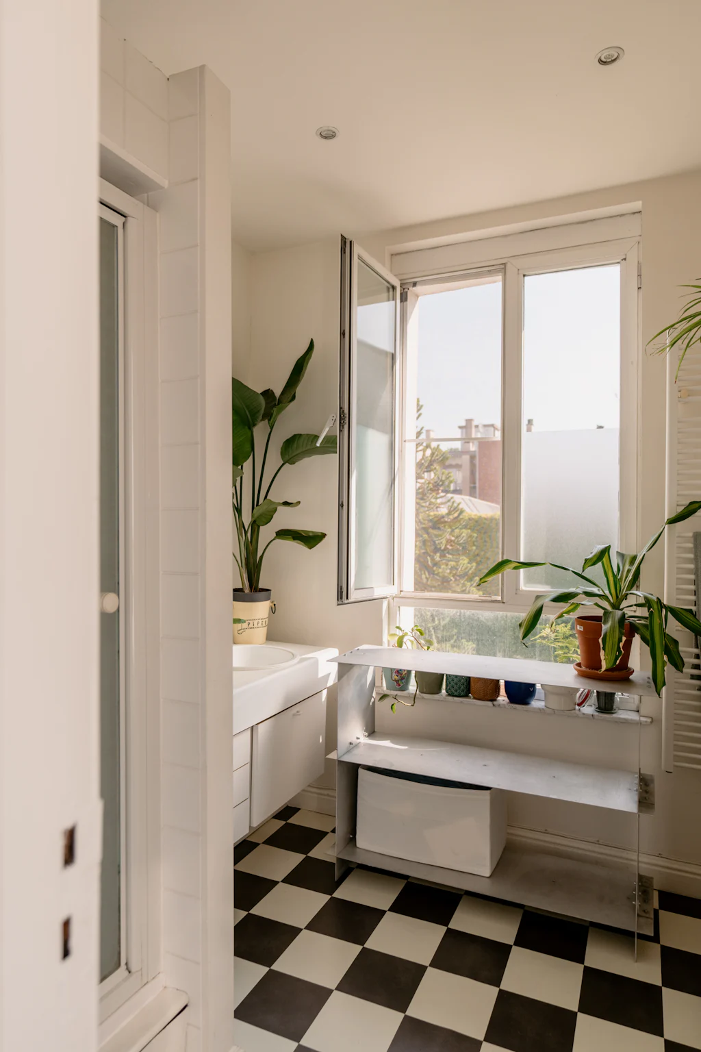 De blauwe deur en witte geraniums aan het raam maken ons benieuwd naar wat er zich achter de bakstenen voorgevel van de woning in de Greinstraat schuilhoudt. Dat blijkt de moeite te zijn. Wij kunnen de ‘greins’ niet van ons gezicht halen bij het ziens van zoveel mooie details: dansende ooievaars, mozaïek vloeren, naakte engelen, deuren met okergeel glas en cassettenplafonds. Ze zijn een kenmerkende herinnering aan de organische art nouveau architectuur uit de belle époque (het huis werd gebouwd in 1923). Het blijkt daarenboven de perfecte gezinswoning te zijn dankzij de 4 slaapkamers, een extra bureaukamer, 2 badkamers en een schommel in de groene tuin van 90 m². De keuken heeft een Boretti gasfornuis met 6 pitten en een ietwat aparte ontbijthoek. Die staat garant voor koffie drinken met zicht op de tuin. En voor uitgebreide diners neem je plaats in de aansluitende eetkamer. Wij houden ook van de dynamiek van de verschillende vertrekken. Die is anders dan bij de meeste herenwoningen waarbij de keuken, eetkamer en leefruimte zich doorgaans achter elkaar bevinden. In deze woning zijn het meer verschillende cosy corners die discreet in elkaar overlopen. Dit komt ook terug bij de badkamer. De eerste badkamer bestaat uit 2 delen waarvan één ideaal dienst kan doen als laundry room. De andere badkamer bevindt zich naast een kamer die heel geschikt is om gasten te ontvangen. En ze heeft een prachtig uitzicht op de seventies boom in de tuin van de buren. Elke verdieping beschikt over een apart toilet. Tot slot heeft de woning een kelder. De auto parkeerden de verkopers in een overdekte garage in de straat waarvan de huurovereenkomst kan overgenomen worden.