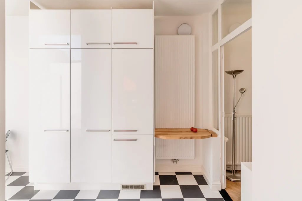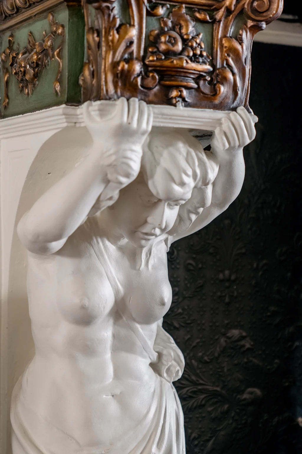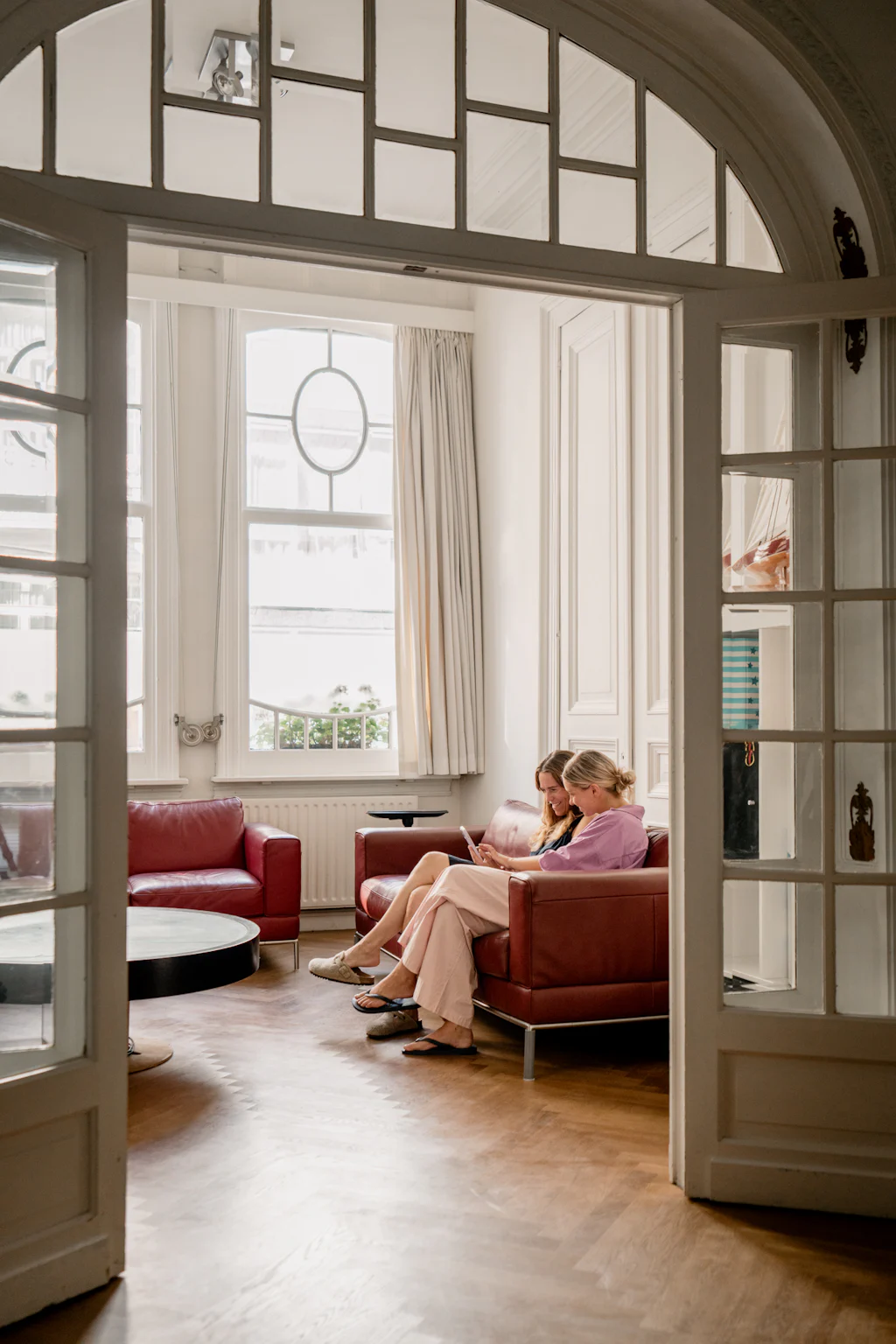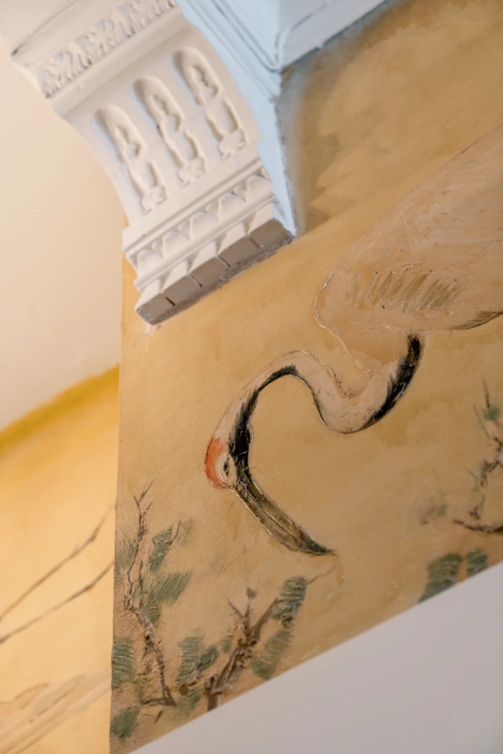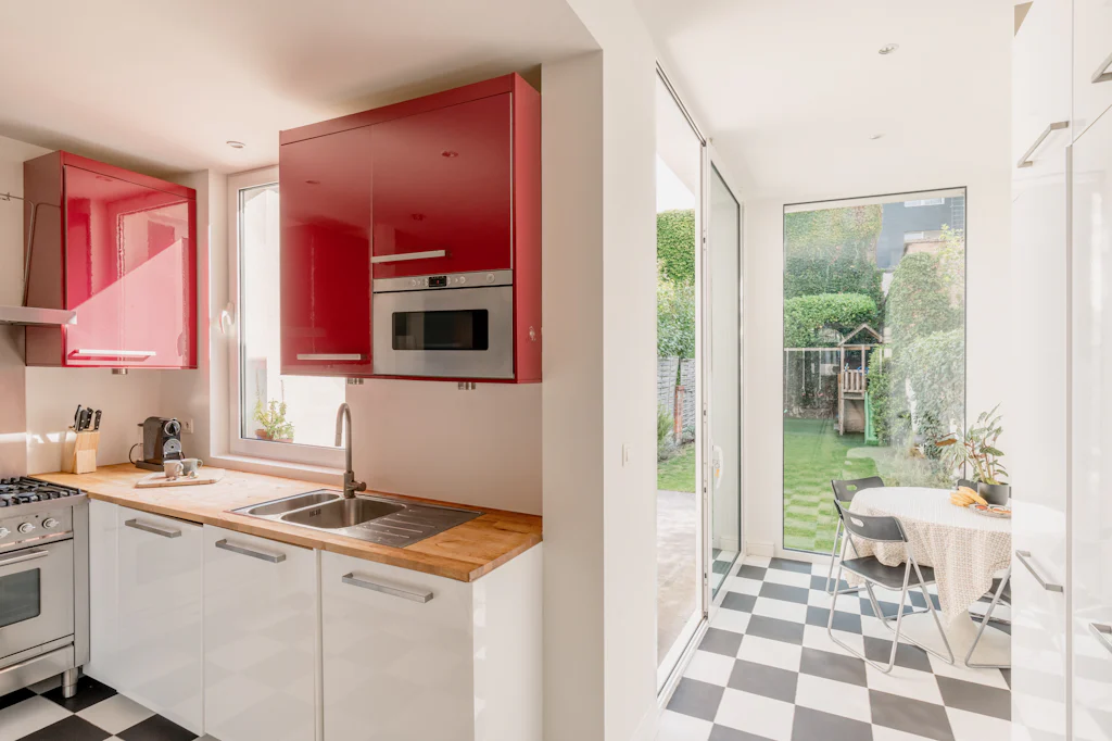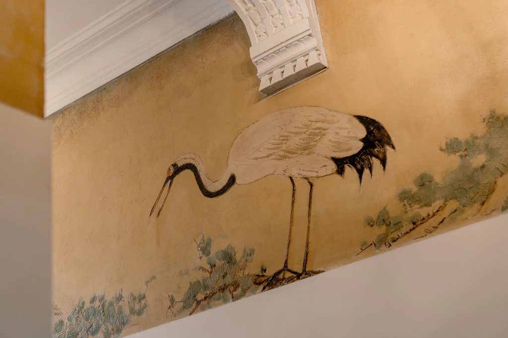 De blauwe deur en witte geraniums aan het raam maken ons benieuwd naar wat er zich achter de bakstenen voorgevel van de woning in de Greinstraat schuilhoudt. Dat blijkt de moeite te zijn. Wij kunnen de ‘greins’ niet van ons gezicht halen bij het ziens van zoveel mooie details: dansende ooievaars, mozaïek vloeren, naakte engelen, deuren met okergeel glas en cassettenplafonds. Ze zijn een kenmerkende herinnering aan de organische art nouveau architectuur uit de belle époque (het huis werd gebouwd in 1923). Het blijkt daarenboven de perfecte gezinswoning te zijn dankzij de 4 slaapkamers, een extra bureaukamer, 2 badkamers en een schommel in de groene tuin van 90 m². De keuken heeft een Boretti gasfornuis met 6 pitten en een ietwat aparte ontbijthoek. Die staat garant voor koffie drinken met zicht op de tuin. En voor uitgebreide diners neem je plaats in de aansluitende eetkamer. Wij houden ook van de dynamiek van de verschillende vertrekken. Die is anders dan bij de meeste herenwoningen waarbij de keuken, eetkamer en leefruimte zich doorgaans achter elkaar bevinden. In deze woning zijn het meer verschillende cosy corners die discreet in elkaar overlopen. Dit komt ook terug bij de badkamer. De eerste badkamer bestaat uit 2 delen waarvan één ideaal dienst kan doen als laundry room. De andere badkamer bevindt zich naast een kamer die heel geschikt is om gasten te ontvangen. En ze heeft een prachtig uitzicht op de seventies boom in de tuin van de buren. Elke verdieping beschikt over een apart toilet. Tot slot heeft de woning een kelder. De auto parkeerden de verkopers in een overdekte garage in de straat waarvan de huurovereenkomst kan overgenomen worden.