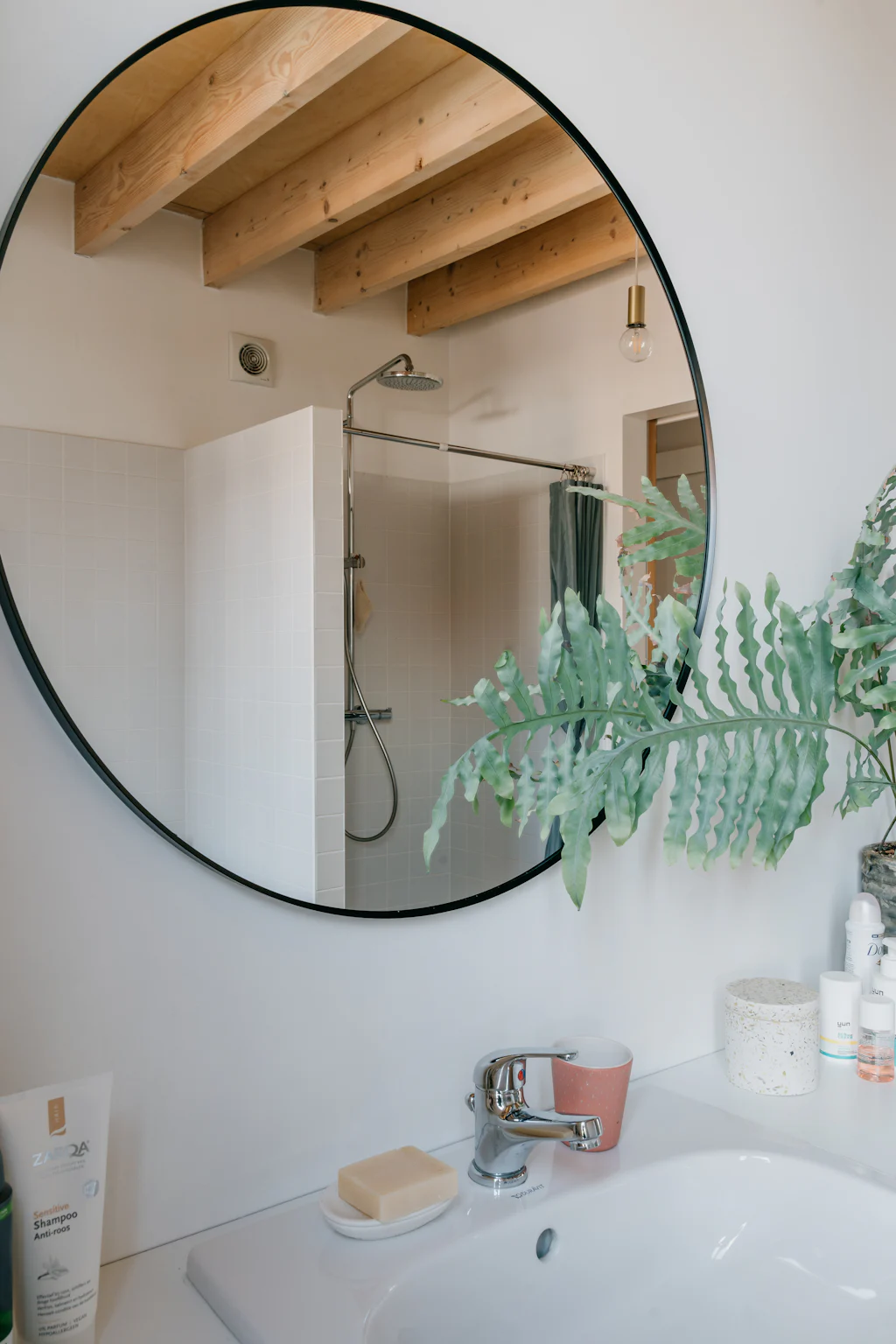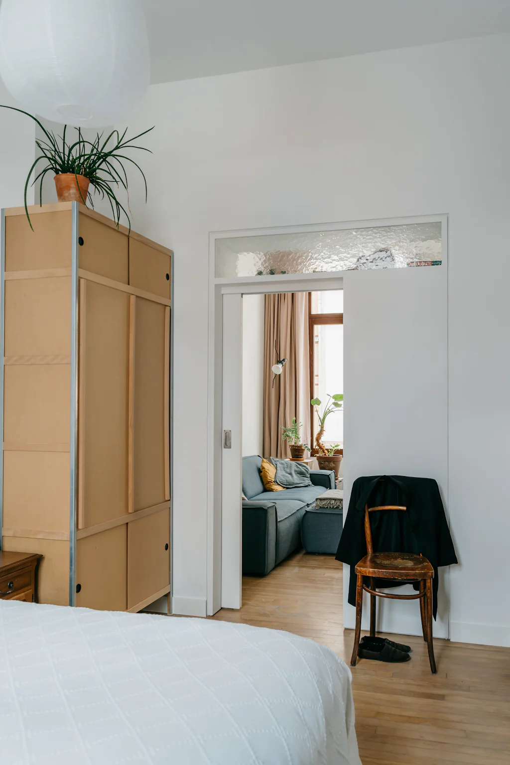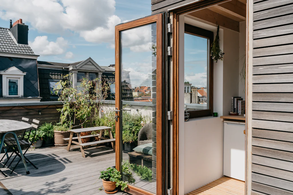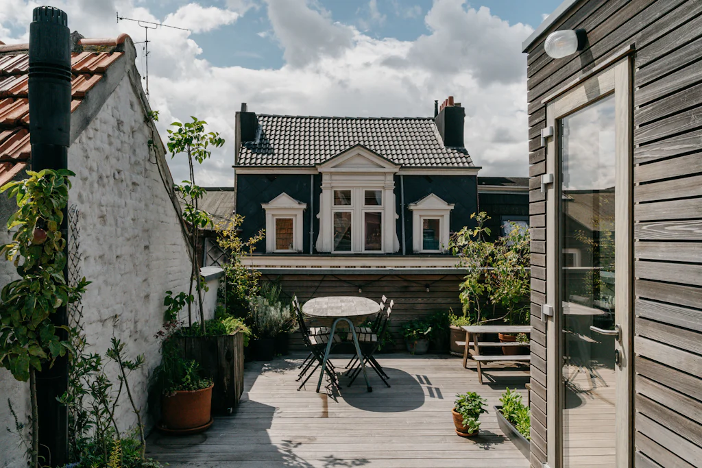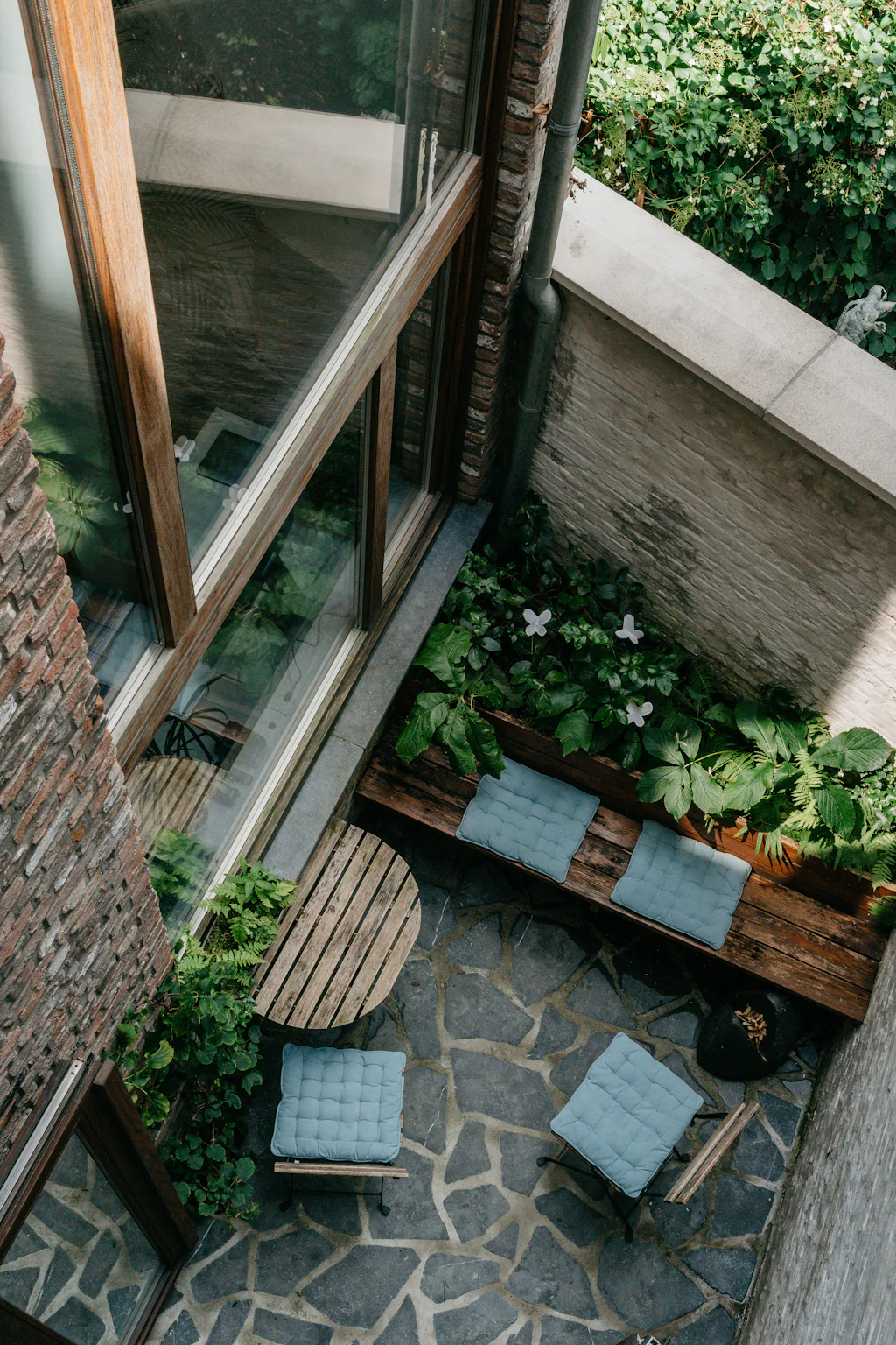 Aangekocht in 2014 en volledig verbouwd in 2015. Met een architect als eigenaar een koud kunstje. En een goddelijk resultaat, onder het goedkeurend oog van de Sint-Willibrorduskerk. Vanop het dakterras van ca. 27 m² geniet je van een fabelachtig uitzicht op die kerk. En buiten de klokkenluider, heeft quasi niemand uitzicht op jou. Net voor je daar naar buiten stapt, loop je voorbij de bijkeuken. Daar kan je een koelkast plaatsen voor gekoelde drankjes en heerlijke hapjes bereiden voor je eventuele gasten. Het vergunde dakterras bevindt zich trouwens op een volledig nieuw opgebouwd volume. Je leest het goed, de 2de verdieping werd nieuw gebouwd, boven op het bestaande huis. Op die verdieping bevinden zich een grote slaapkamer (die nog opgesplitst kan worden in 2 slaapkamers) en een badkamer. Met douche, ligbad én een op maat ontworpen badkamermeubel. Een verdieping lager vinden we dan de leefruimte. Daar kan je door de bibliotheek naar de masterbedroom wandelen. Een schuifdeur in deze bibliotheek geeft je de mogelijkheid om de ruimtes van elkaar te scheiden of ze als 1 te gaan gebruiken. In dat laatste geval verhuis je je bed gewoon naar de verdieping erboven. De keuken en de eetkamer bevinden zich op de gelijkvloerse verdieping. In de eetkamer heb je een leuke connectie met de straat, door het grote raam onder de druivelaar. En omdat het straatniveau iets lager ligt, blijft je privacy behouden. Voorbijgangers zien dus niet welke soep jij die dag eet. In het hele huis ligt een massieve esdoorn parketvloer. Die is afkomstig uit een voormalig squashlokaal in de buurt (CenterCourt in Boho). De potten staan dus in een wip van het gasvuur op de eettafel. De niet kokende partner kan trouwens perfect volgen wat in de soep gedraaid wordt, vanuit de bureauruimte met zicht op de keuken en op het mediterraan aperitiefhoekje buiten. Een heel inspirerende plek, met een mooie vide tot aan de 1ste tussenverdieping (waar zich een gastentoilet met wastafel bevindt). Als laatste etage in de woning, hebben we … de kelder. Droog en mét daglicht. Geen straf om hier de was te doen. We geven je graag ook nog even mee dat de Sint-Willibrordusstraat sinds 2018 als woonerf werd ingericht. Als je de straat uitwandelt, kom je aan het Willibrordusplein waar je het mozaiektapijt van kunstenaar Bren Heymans kan ontdekken. Hij inspireerde zich voor het ontwerp op traditionele Marokkaanse tapijten en verwerkte daarin zowel een reflectie van de Sint-Willibrorduskerk als een basketbalveld. Elk jaar worden hier verschillende evenementen georganiseerd door het wijkcomité zoals Kerkstraat Plage of het Warm Winters Wijkfeest. Het plein is het hart van de Willibrorduswijk!