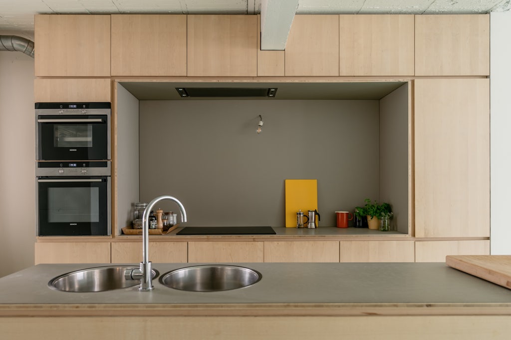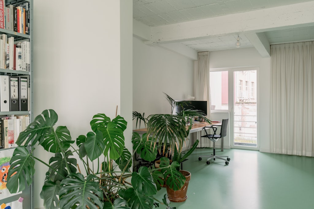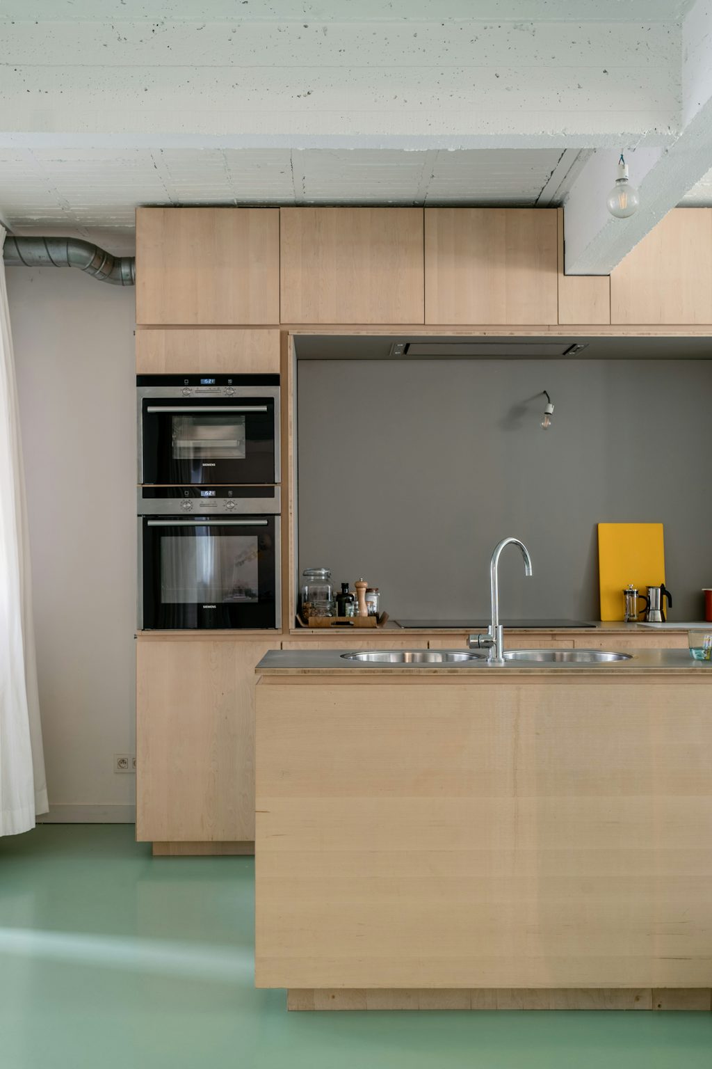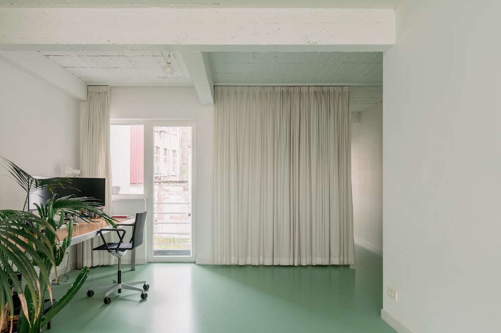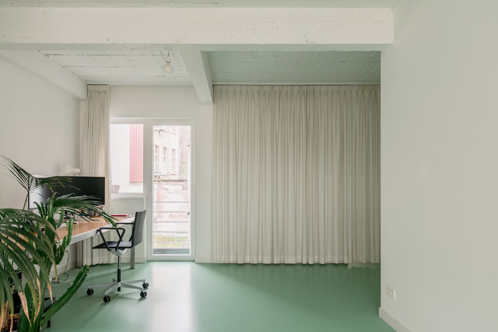 RENTED by George: 3 slaapkamers, plafond in zichtbeton, gietvloer in muntgroen, multiplex, home office