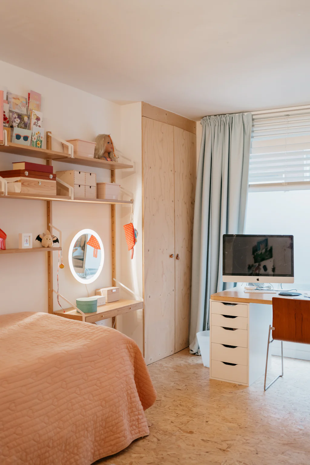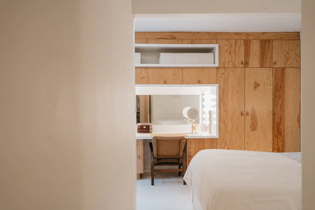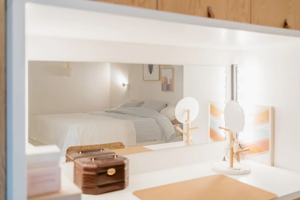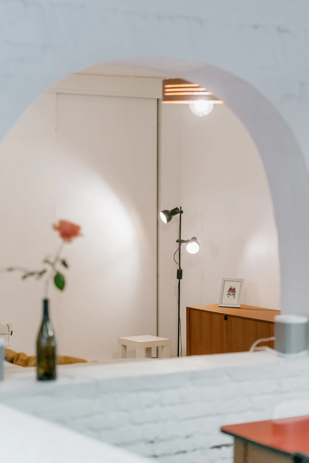 Het loft appartement, dat met zijn oppervlakte meer aanvoelt als een huis, is gelegen in de De Beuckerstraat. Eén van die leuke straten in de wijk Brederode, samen met onder andere de Juliaan Dillensstraat en de Catharina Beersmansstraat. De gevel geeft niets prijs: lange, zwarte ramen en een witte gevel (geeuw) maar quelle sorpresa bij binnenkomst. Een heerlijk eclectisch interieur met ronde vormen, muren in ruwe baksteen, marmer, hout en veel kleur! Je weet niet waar eerst te kijken, al werkt de keuken als magneet. Volledig uitgerust met kwalitatieve toestellen van de merken Siemens en Liebherr en een marmeren werkblad. Via een schuifdeur geeft ze directe toegang naar de stadstuin van ca. 25 m². De kachel van het merk ‘Weltevree’ (zal wel zijn) nodigt als het ware uit om ineens te blijven zitten voor een gezellige winterborrel. Toch maar even terug naar binnen, we zijn nog niet helemaal rond. De zithoek bevindt zich ietwat apart, knus! Onder het tapijt zit de trap naar de kelder verstopt, in de ingemaakte kasten de rommel. Een 1ste kamer is opgedeeld in 2 delen, met een soort van dressing. De 2 andere kamers bevinden zich aan de rustige achterzijde. De masterbedroom heeft ingemaakte kasten met zo’n leuke make-up tafel. En een eigen toegang naar de stadstuin. De badkamer is licht, ruim en warm. Leuke eyecather daar is de toegang naar de douche, die doet denken aan een grotwoning in Matera of Cappadocië (prachtige plekjes, zoek maar even op).