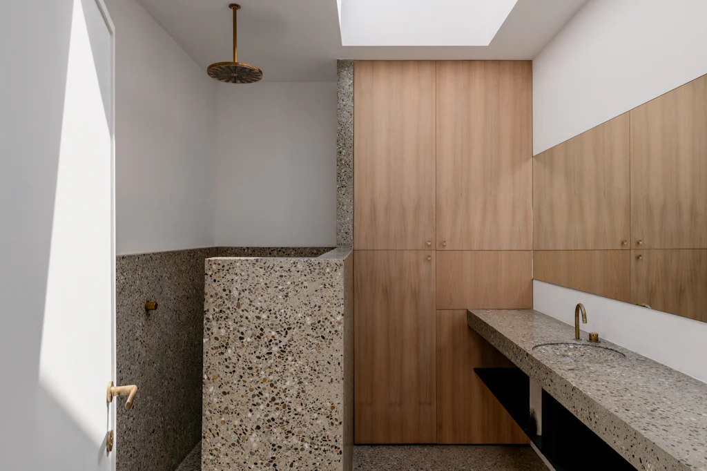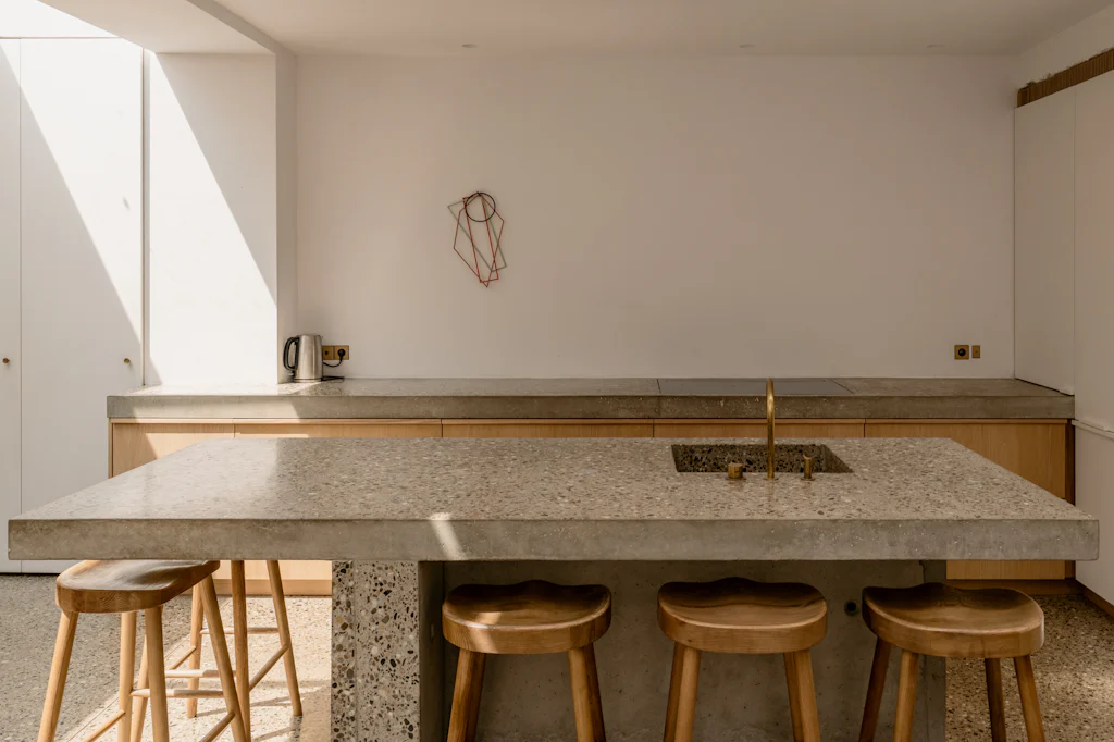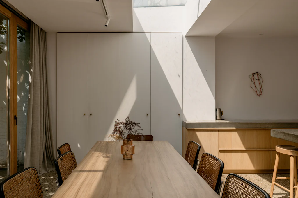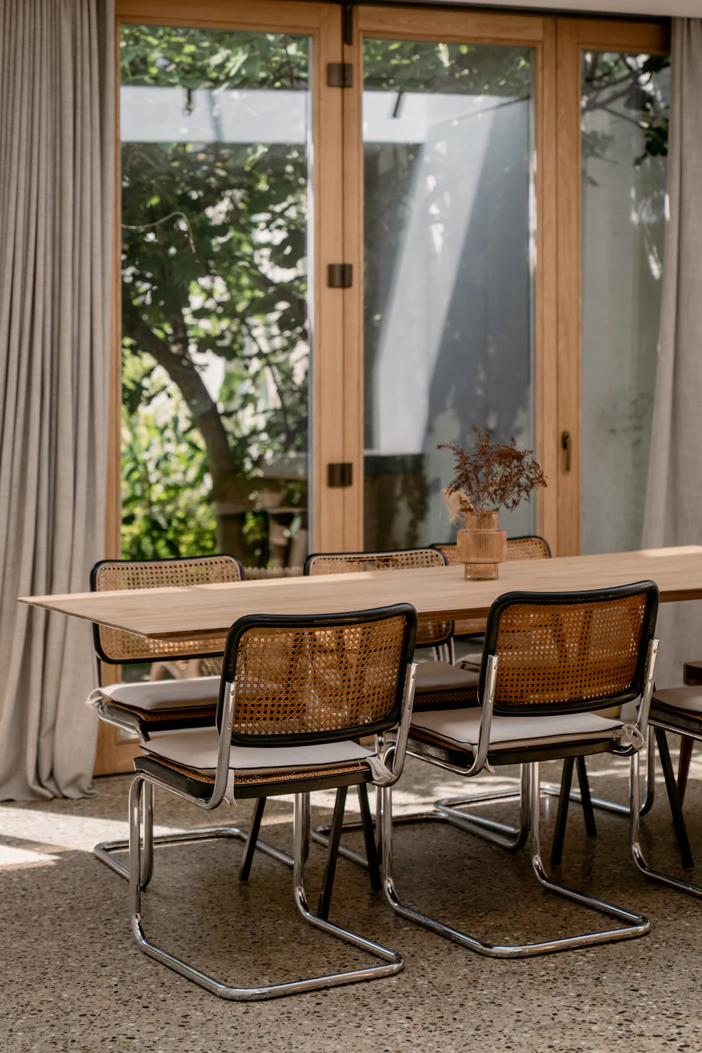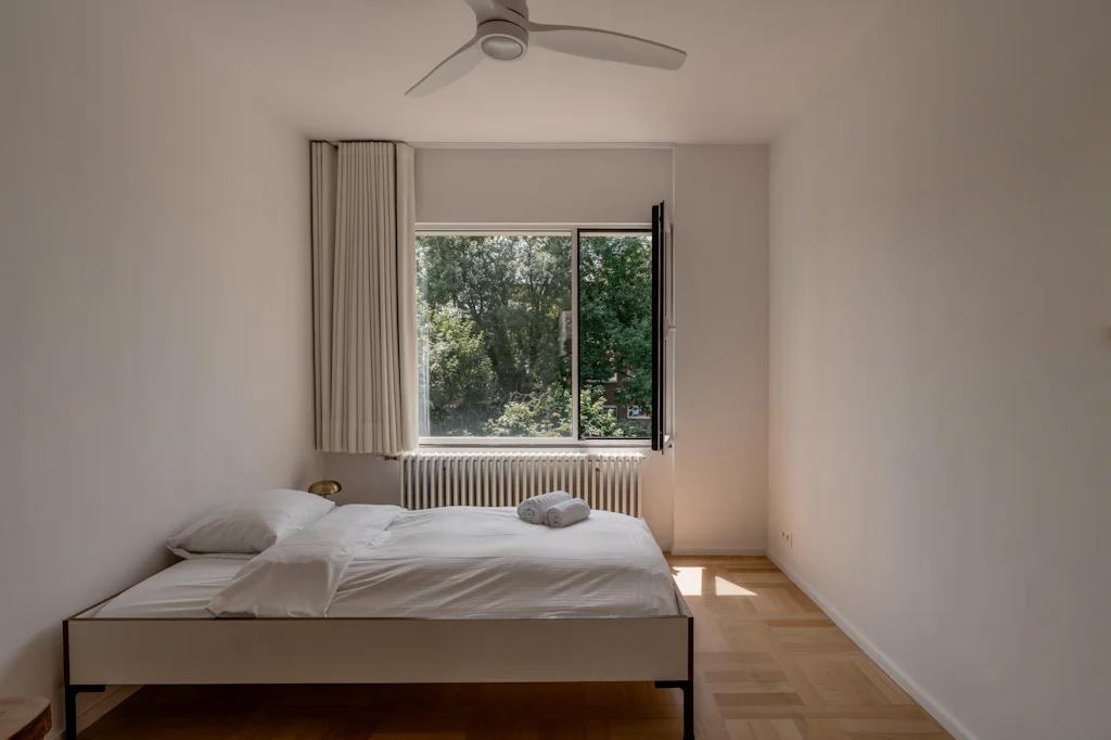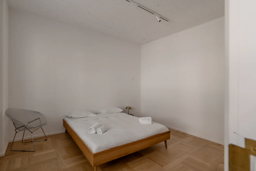 2024 markeert het jaar van de grondige renovatie. Met de persoonlijke signatuur van de eigenaar kreeg het ontwerp betekenisvolle vorm, waarin schoonheid en functionaliteit samenkomen. Denk aan een Japans douchetoilet, sobere Visible V lichtschakelaars en een discrete waskoker die vuile sokken geruisloos afvoert naar de wasmachine in de kelder. Jawel, badkamers in meervoud, want 4 slaapkamers delen 2 ruime badkamers. Een extra kamer op de 1ste verdieping werd ingericht als home office met uitzicht op een groen dak en de tuin van maar liefst 80 m², een natuurreservaat aan eigen huis. De bakstenen muur in de leefruimte nodigt uit om een monumentaal kunstwerk of een expressief wandtapijt te etaleren, een statement piece dat elders zelden een plek vindt. De keuken, uitgevoerd in uitgewassen beton, is een kunstwerk op zich, en diezelfde materiaalkeuze vormt ook de basis voor de tijdloze badkamers. De houten harmonicadeuren die de eetkamer met de tuin verbinden, brengen warmte en natuurlijk uitstraling in de woning. In een zorgvuldig gekozen hoek van het huis ligt een besloten salonruimte, een plek die rust ademt en uitnodigt tot bezinning. Er valt nog veel te vertellen over deze woning, maar niets vervangt het gevoel dat ontstaat wanneer je hier zelf binnenstapt. We willen je wel nog meegeven dat de woning ook een enorme garage met elektrische poort en laadpaal heeft, een waardevolle troef in BoHo.