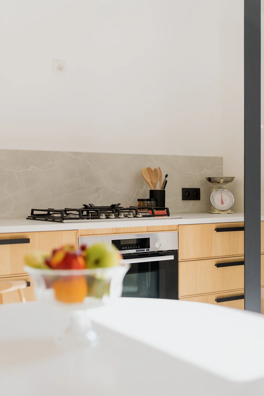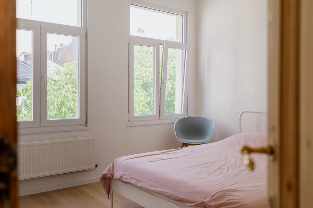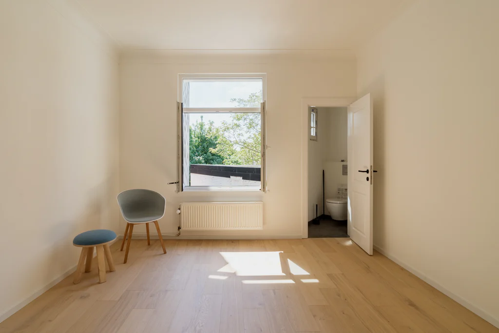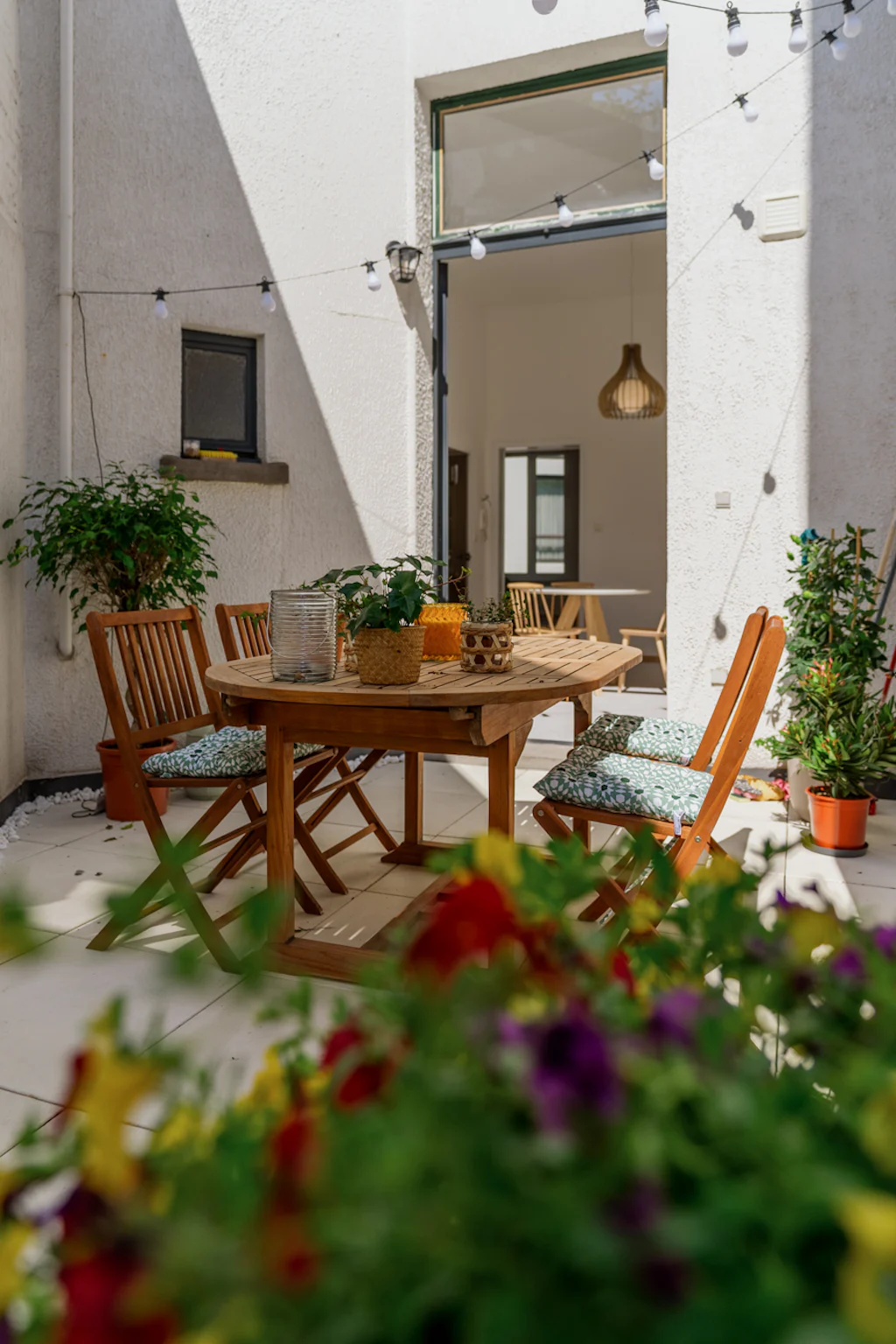 De woning is gelegen op de hoek van de Jozef de Bomstraat en de Constantia Teichmannplaats, het groene pleintje in het hart van de Harmoniewijk. Je kent het misschien van het hippe wassalon Laundry Corner. Veel ramen, hoge plafonds en een straat aan de overkant zorgen voor veel natuurlijk licht in de leefruimte en 2 van de 3 slaapkamers. De inpandige garage is van onschatbare waarde in deze buurt. Achter deze garage ligt een grote atelierruimte, met toegang naar de kelder. Aan de andere kant van de voordeur, in de inkomhal, is er een kamer die ingericht kan worden als home office. Deze 2 ruimtes zorgen ervoor dat een combinatie wonen/werken perfect mogelijk wordt in de woning: vooraan een wachtkamer, achteraan een praktijkruimte. Als je de gezandstraalde, beuken trap naar boven neemt, kom je bij de leefruimte en de keuken. Het dubbel raam naar het terras staat de hele dag open van zodra de zon schijnt. Naast zon, geniet je er ook van veel privacy. De 3 slaapkamers delen een badkamer op de bovenste verdieping. En geen renovatiewerken komende zomer, dit huis is net gerenoveerd!