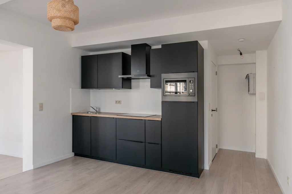 In het centrum van Antwerpen, op de hoek van Kipdorp en de Sint-Katelijnevest ligt een gebouw met een brede gevel en veel ramen. Vanuit de studio op de 1ste verdieping hebt je daardoor een mooi uitzicht op de toren van de Sint-Carolus Borromeuskerk. Zowel vanuit de leefruimte als vanuit je bed, de studio is namelijk in de lengte georiënteerd. De badkamer heeft een douche en een lavabomeubel, het toilet bevindt zich apart. Heerlijk licht en uiterst centraal gelegen, vlakbij het goed verborgen Hendrik Conscienceplein. Je lijkt haast wel diep in de Italiaanse laars terechtgekomen te zijn. Iets verderop vind je dan weer de bruisende Groenplaats en Grote Markt. De gemene kosten bedragen 75 euro/maand en zijn een provisie voor het onderhoud van de gemene delen en de blokpolis. Daarnaast betaal je een provisie van 175 euro/maand voor het privatief verbruik van water, gas en elektriciteit.