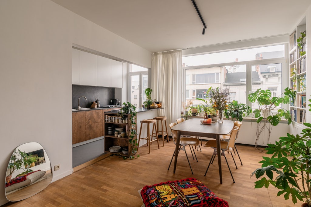 Voor de 2de keer mag Oh my George op zoek gaan naar een nieuwe huurder voor dit appartement. De 1ste keer was een match made in heaven, we moesten zelfs niet online gaan. Dat doen we nu wel & wie weet word jij wel de volgende engel die zijn intrek mag nemen. De 4de verdieping bevindt zich trouwens niet zo heel ver van de hemel. In combinatie met de brede straat, valt natuurlijk licht dan ook rijkelijk binnen. Het appartement heeft een klassieke indeling, met 2 ruime slaapkamers achteraan en de leefkamer vooraan. De open keuken is dan weer allesbehalve klassiek. Geen typisch wit met zwarte kraan hier, maar warm hout dat bij de vloer past. En waarop de houten barkrukken aan het eiland natuurlijk ook perfect afgestemd zijn. Neem een boekje uit de boekenkast, nestel je op het vloerkleed voor de sierhaard en laat je avond beginnen. De gemene kosten bedragen 300 euro/maand en omvatten alle privatieve verbruikskosten voor water, aardgas, elektriciteit en internet/tv. De verhuurperiode voor dit appartement is bespreekbaar (met een minimum huurperiode van 3 maanden).