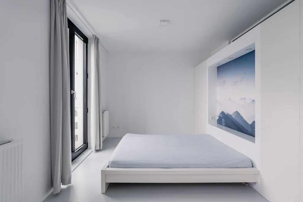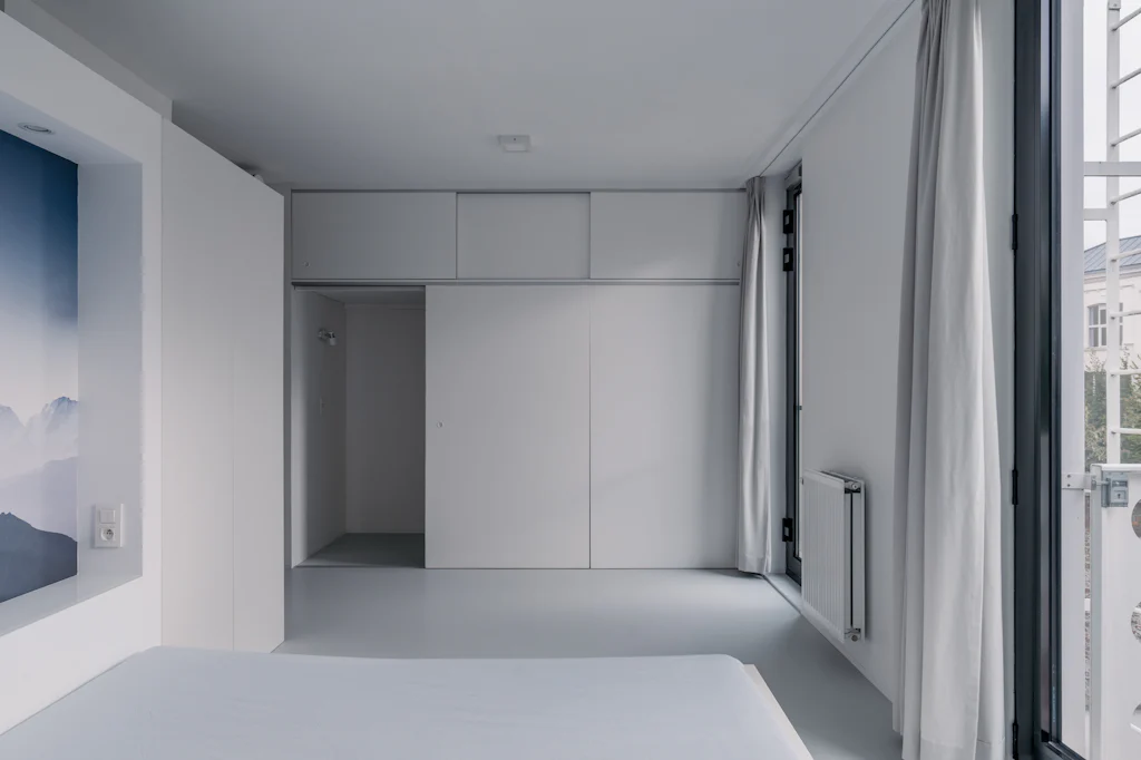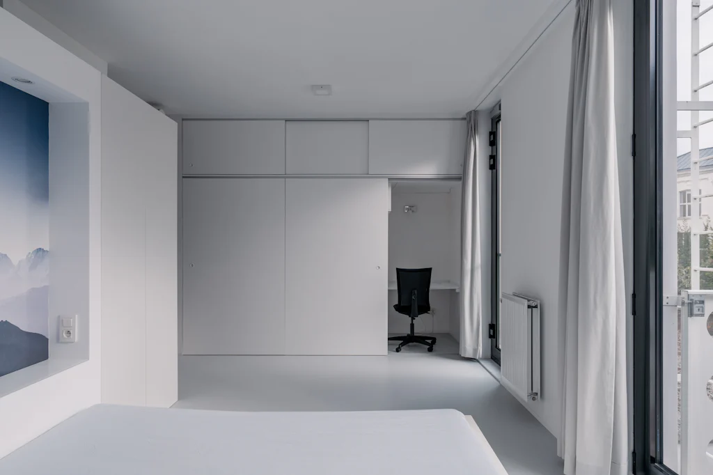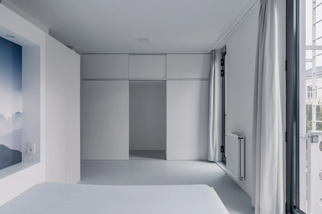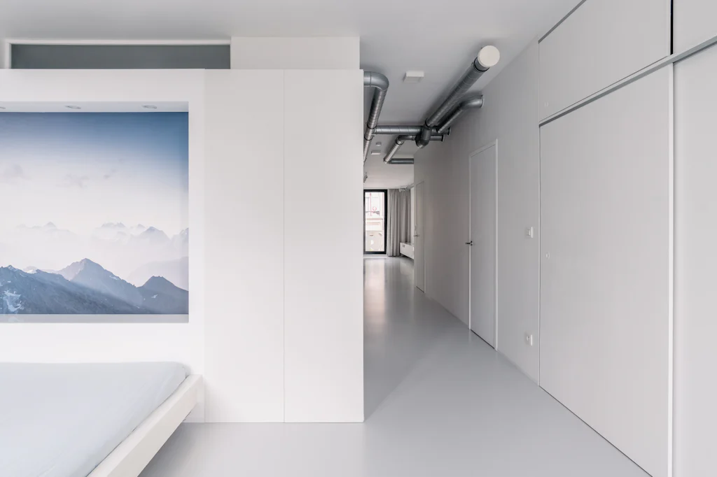 Als dit voor jou een herkenbaar verhaal is, hebben we goed nieuws. Oh my George heeft een loft appartement in verkoop gelegen op de 2de verdieping van een gebouw dat lijkt op een Lego blokje. In 2013 gaf AG Vespa opdracht aan met zicht op zee architecten & ontwerpers om een nieuw gebouw te ontwerpen voor een perceel gelegen tegenover Designcenter De Winkelhaak. De opvallende gevel, bestaande uit witte geprofileerde betonpanelen, is een hedendaagse vertaling van de klassieke stadsgevel. Voor de indeling van het appartement koos de eigenaar er bewust voor om de ruimte zoveel mogelijk open te trekken en een loft te creëeren. Weinig deuren, een gietvloer en zichtbare spiraalbuizen in combinatie met warme, rustgevende landschappen op de muur. Een bureau en logeerbed/dressing zijn verstopt achter verschuifbare wanden in de slaapkamer. Het terras aan de voorgevel geeft je het gevoel IN de Lego te zitten. De echte Lego kan je op jouw beurt opbergen in de privatieve kelder, wat ons opnieuw bij het begin van dit verhaal brengt.